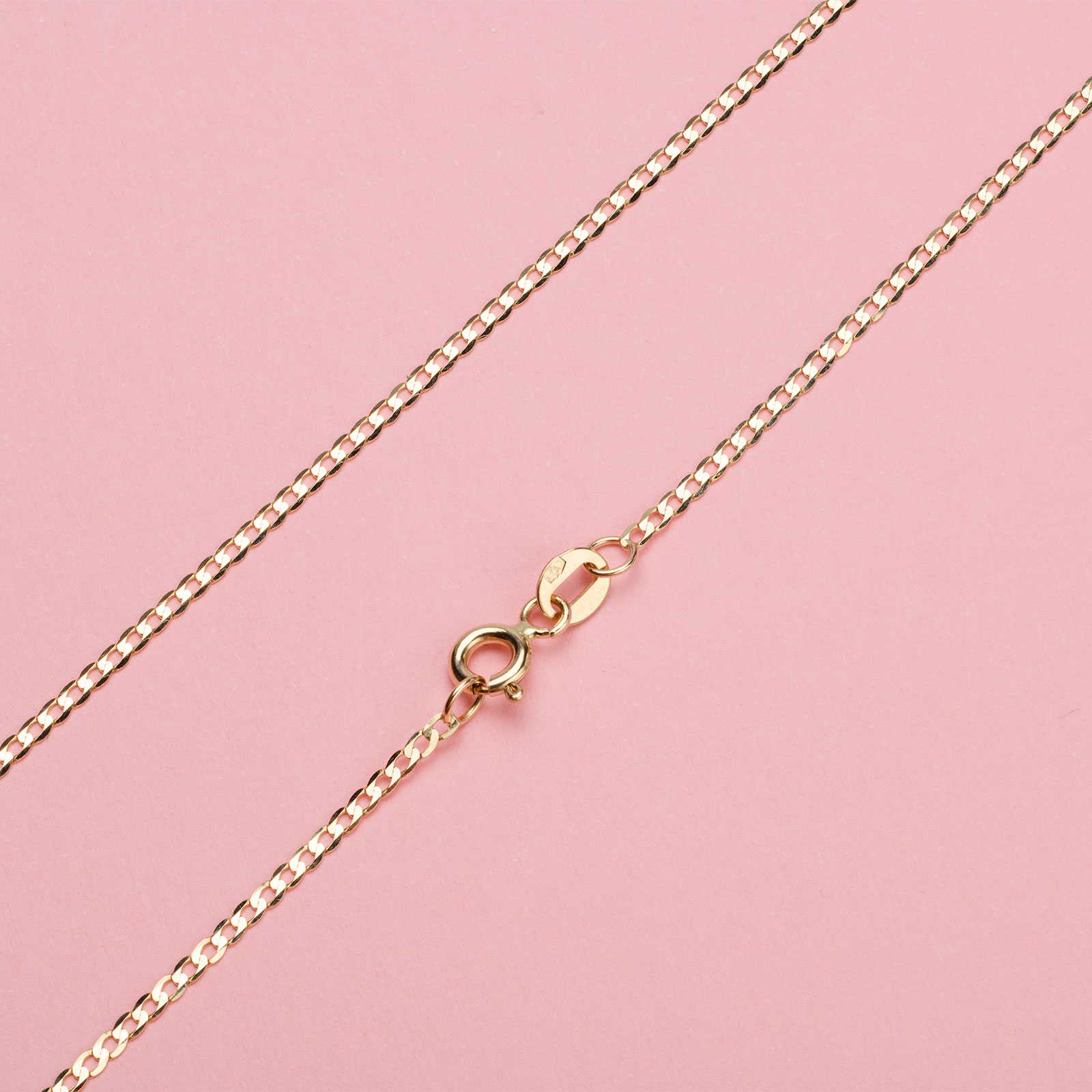 Łańcuszek wykonany ze złota próby 585 o długości 42cm. Znakomity do lekkich wisiorków lub zawieszek. Ładnie też wygląda noszony solo. Splot płaski, pancerka. Waga 1,50g.