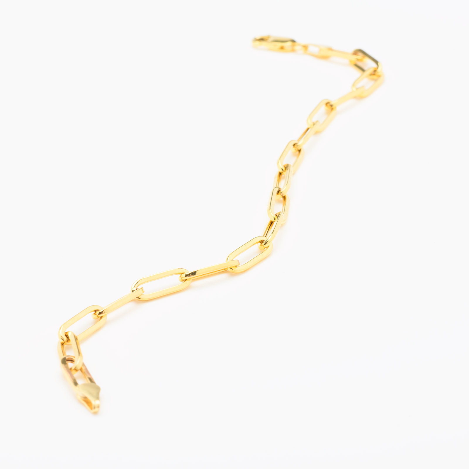 Elegancka złota bransoletka próby 585 to niezwykły dodatek, subtelny, modny i piękny. Wykonana z grubego łańcucha, który delikatnie oplata się na nadgarstku, podkreśla wyjątkowy styl i elegancję noszącej ją osoby. Kolor złota pięknie mieni się w słońcu, dodając blasku każdej kreacji. Doskonała propozycja dla osób ceniących sobie luksusowe dodatki o ponadczasowej wartości.