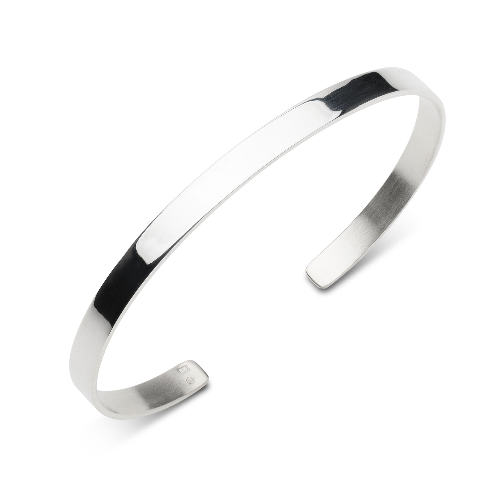 Damska bransoletka wykonana z polerowanego, pełnego srebra. Bransoletka pasuje na rękę o obwodzie od 15cm do 18,5cm, regulacja odbywa się przez lekkie zgięcie lub rozgięcie. Szerokość bransoletki: 4mm, grubość: 1,3mm, waga: ok. 10,0g, materiał: srebro próba 925. Istnieje możliwość zamówienia innej wielkość bransoletki podając obwód dłoni w uwagach przy zamówieniu. Koszt za indywidualne zamówienie płatne dodatkowo ok. 35 zł (w tej sprawie prosimy o kontakt tel. 695 695 103). Istnieje możliwość grawerowania dedykacji, sentencji lub innego tekstu. Grawerunek wykonujemy standardowo na wewnętrznej stronie.