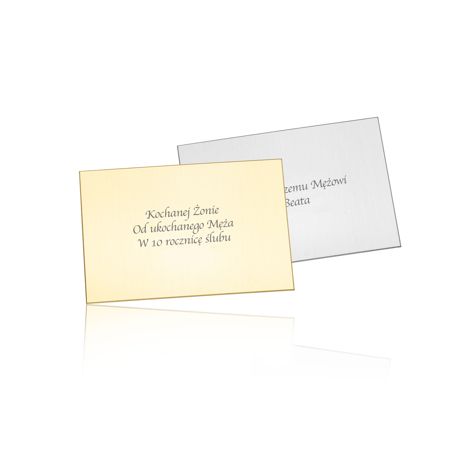 Spersonalizuj swój prezent ! Dołącz do pudełka pamiątkową blaszkę z grawerowaną dedykacją umieszczoną wewnątrz wieczka. Metalową blaszkę w kolorze złotym lub srebrnym możesz zamówić pod tym linkiem: https://www.twojabizuteria.pl/tabliczka-z-grawerem-dedykacja.html. Grawer wykonywany jest za pomocą komputerowej frezarki grawerniczej czcionką ozdobną lub prostą. Istnieje również możliwość wygrawerowania firmowego loga.