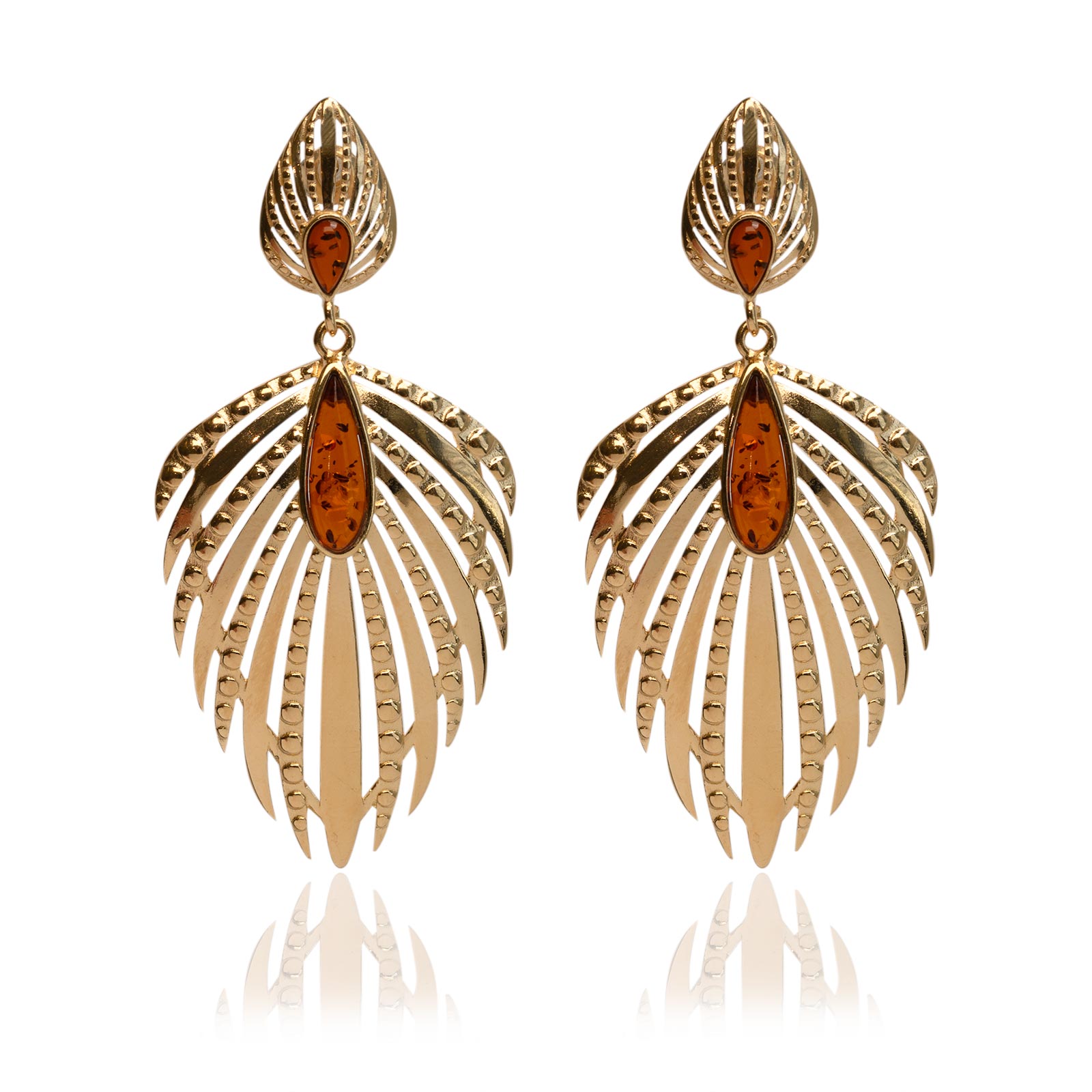 Długie kolczyki, pozłacane z bursztynem