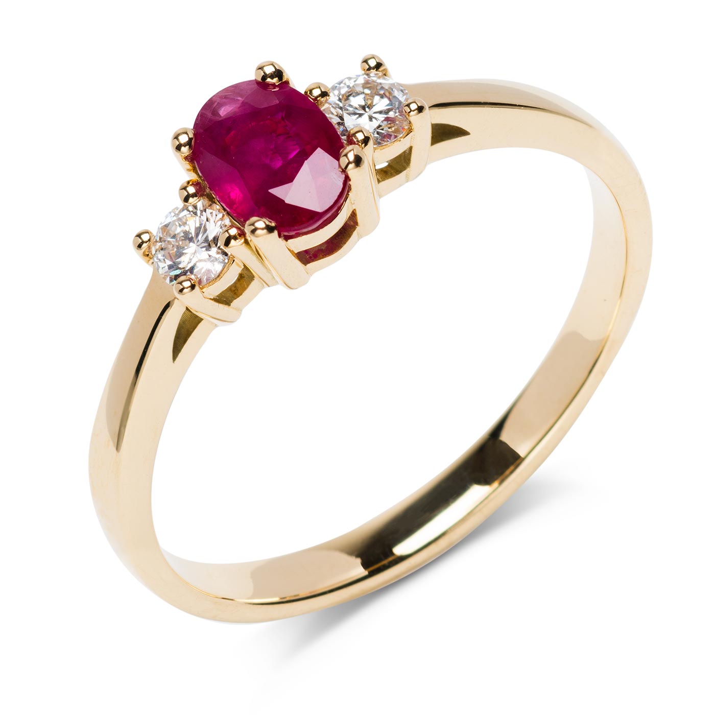 EMMA - Złoty pierścionek z Rubinem i diamentami - brylantami. Klasyczna i piękna forma pierścionka wzbogacona pięknym rubinem o niezwyklej nasyconej barwie. Klasyka i nowoczesność w jednym wzorze pierścionka.