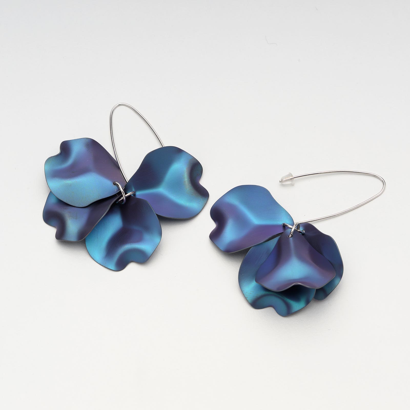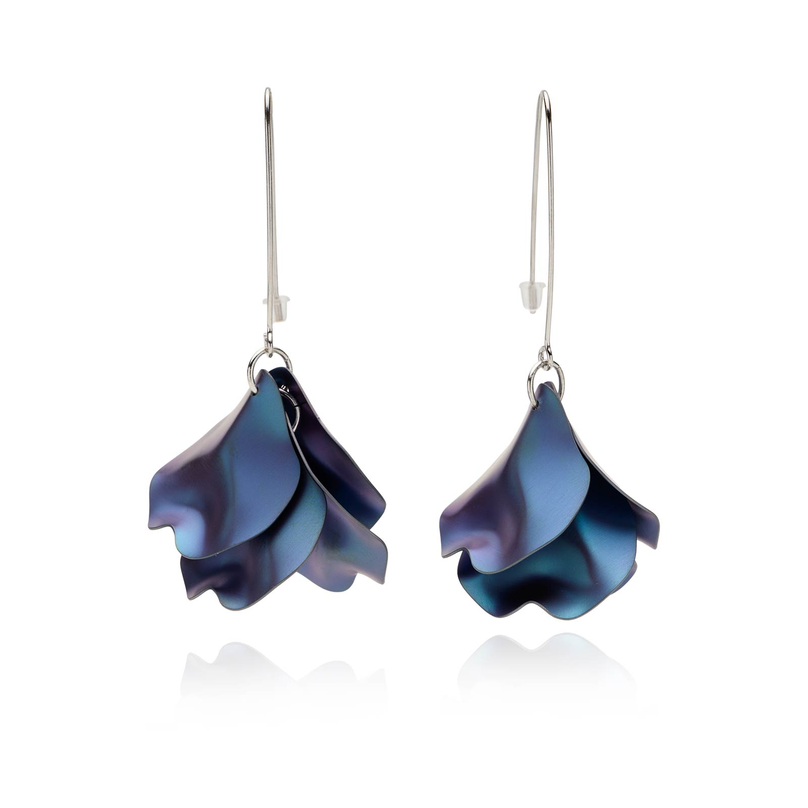 Kolczyki srebrne 925 z tytanem niebieskim - TITANI - płatki kwiatu