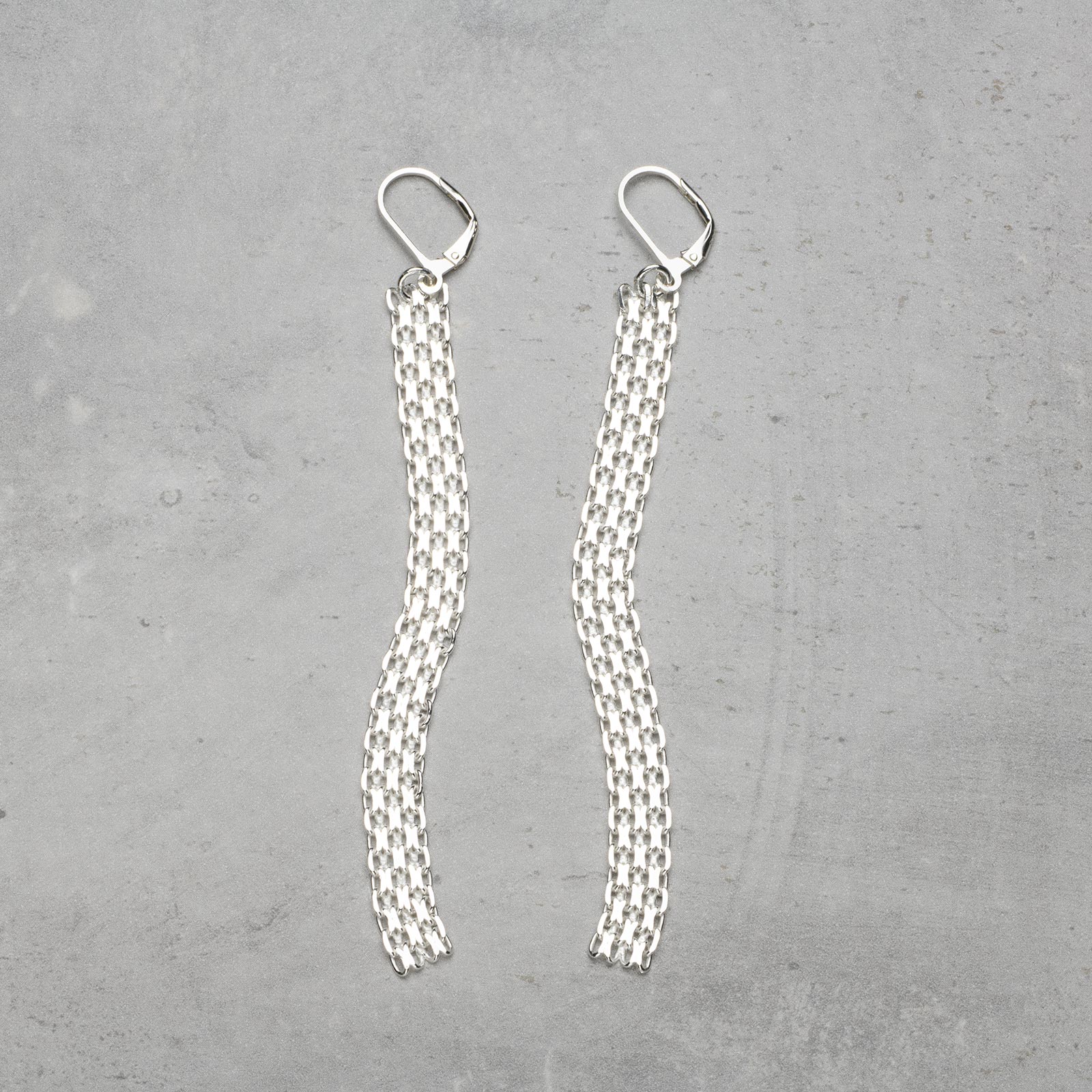 Długie kolczyki srebrne o splocie typu bismarck. Dzięki wykonaniu z wysokiej jakości srebra próby 925 prezentują się w nienaganny sposób.