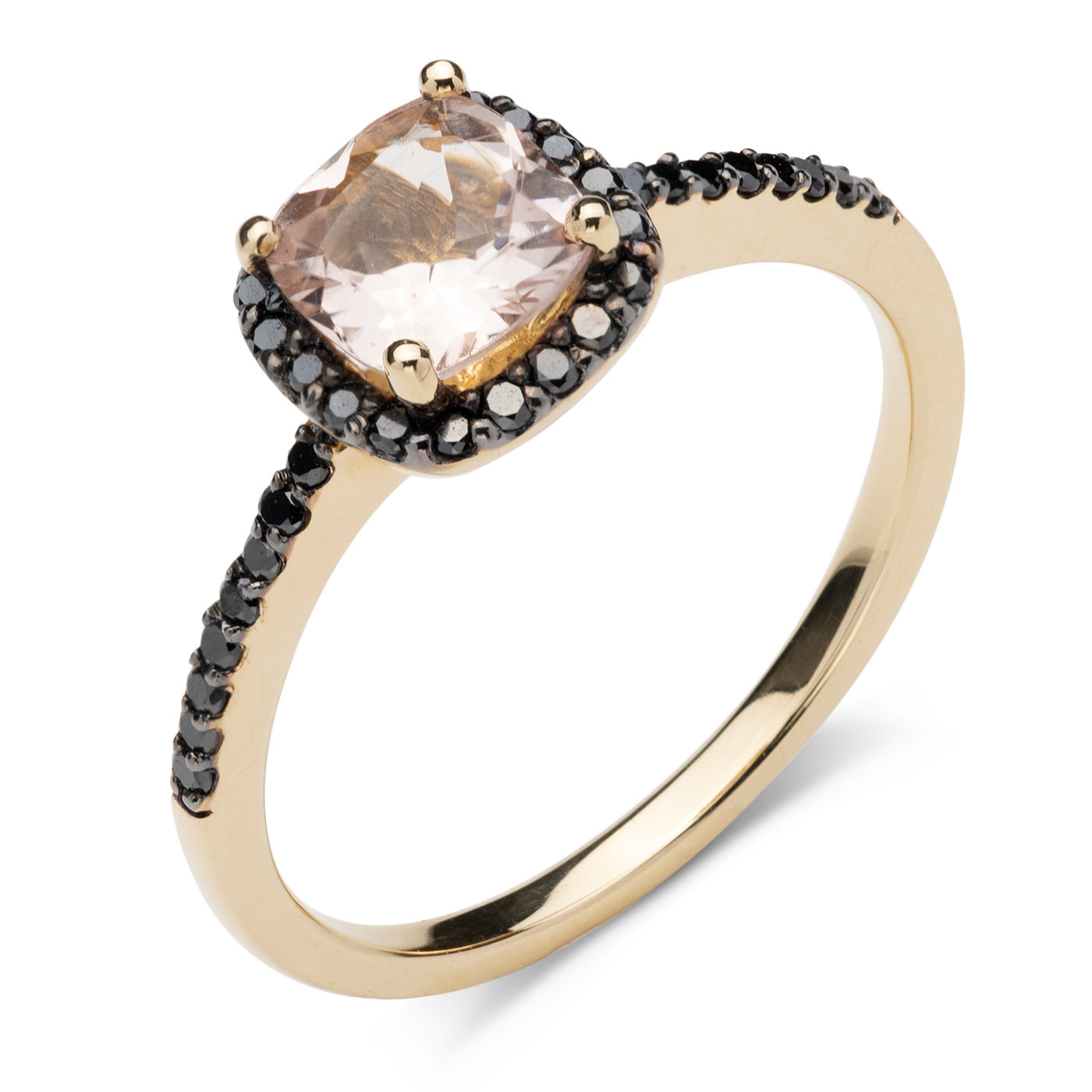 MORGAN - Pierścionek z morganitem i czarnymi diamentami.