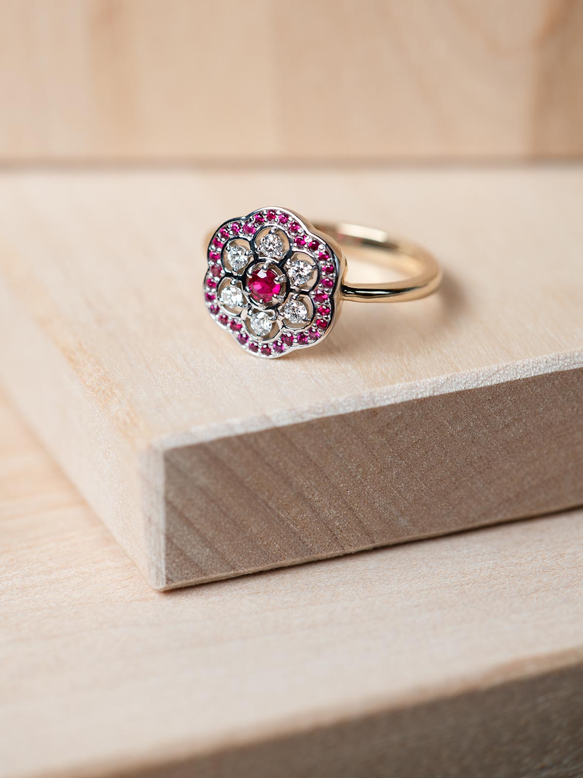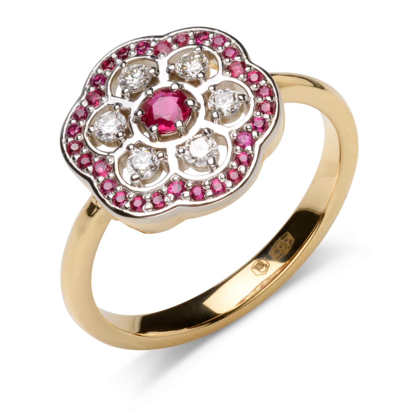 ROSS - złoty pierścionek z rubinami i brylantami