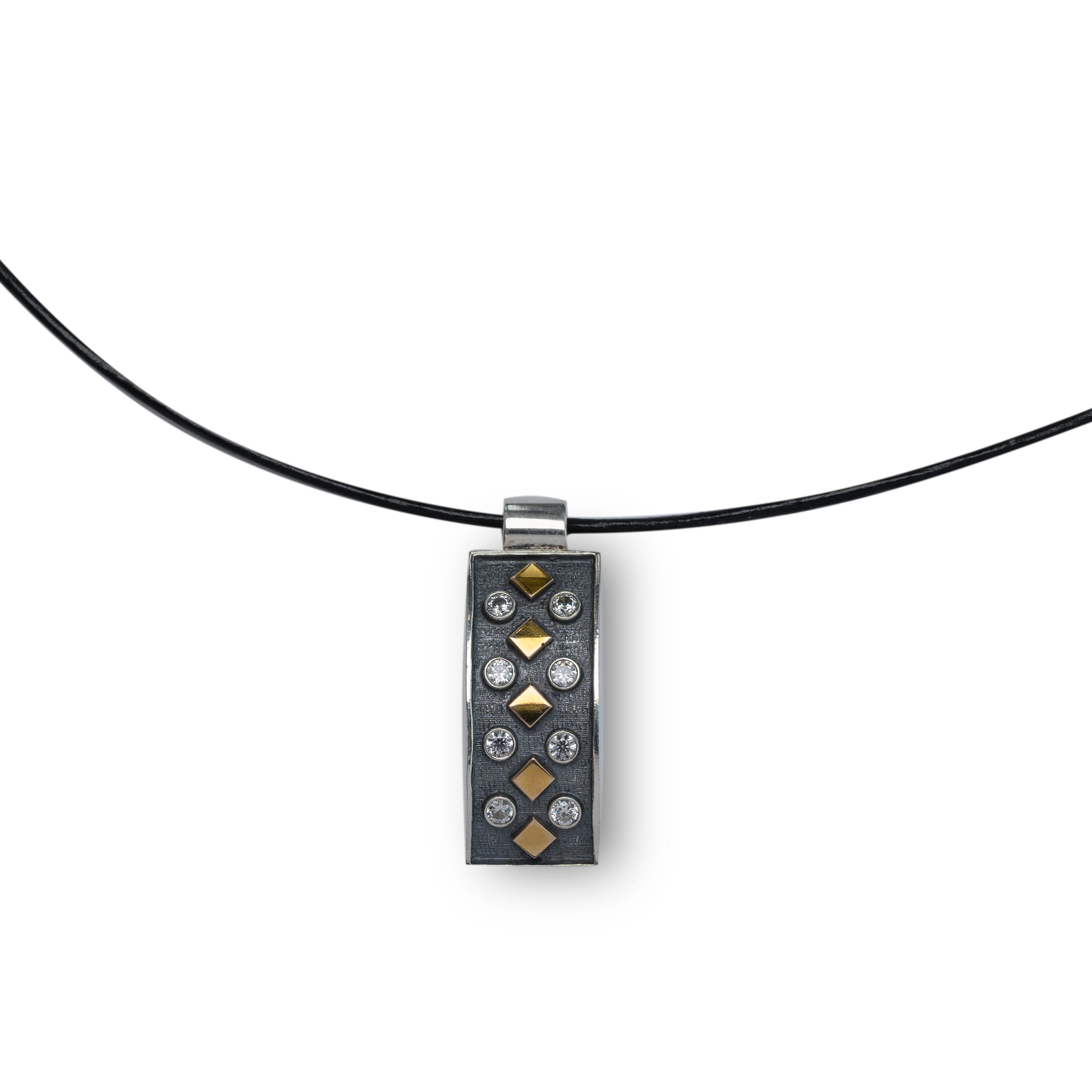 MOTIF - MODOWA KOLEKCJA - Naszyjnik srebrny w kształcie prostokąta, srebro próby 925 i małe kwadraciki ze złota próby 585 i cyrkonie.