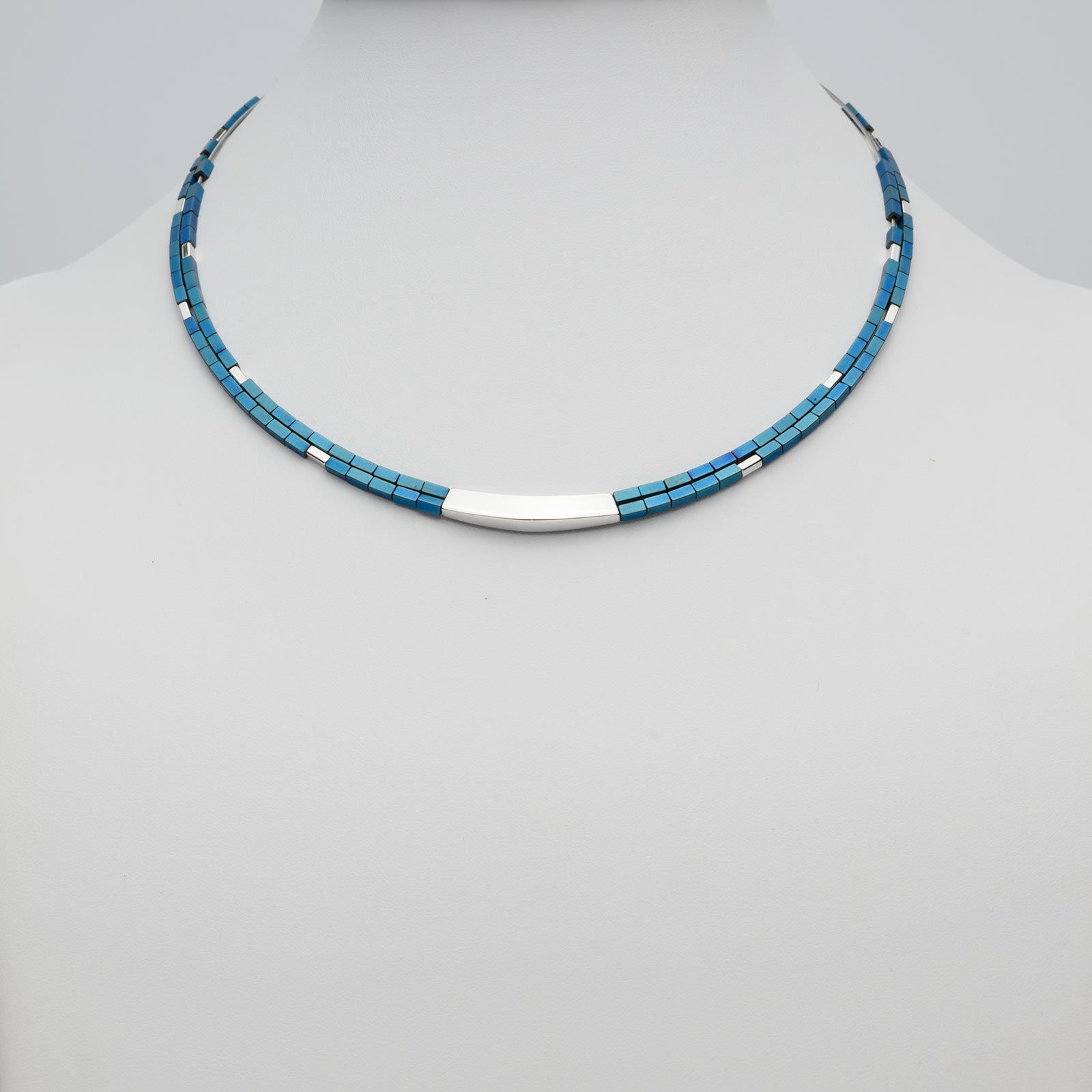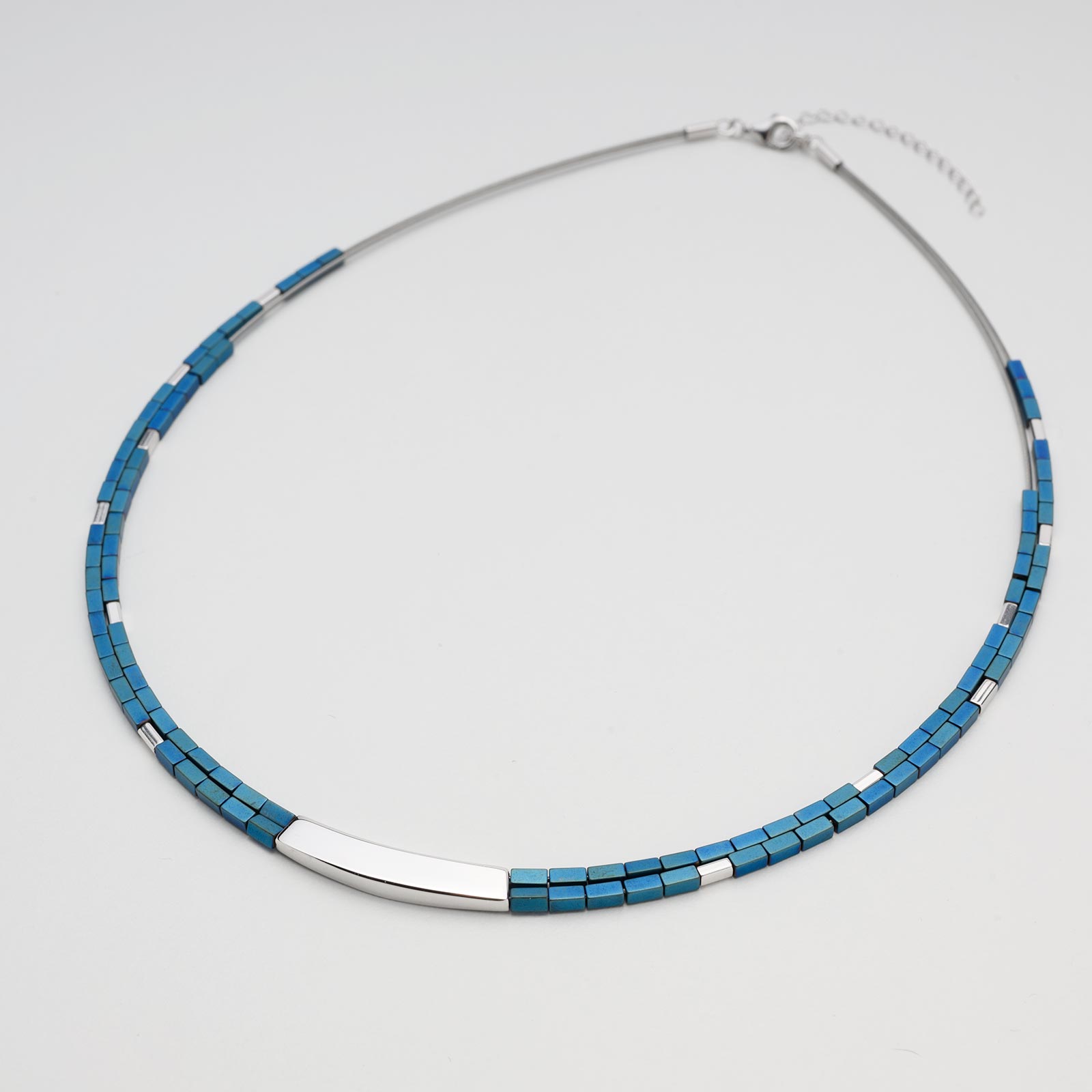 Naszyjnik damski ze srebra 925 i hematytu w kolorze niebieskim