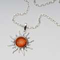 Naszyjnik z bursztynem w srebrze 925 w formie słońca