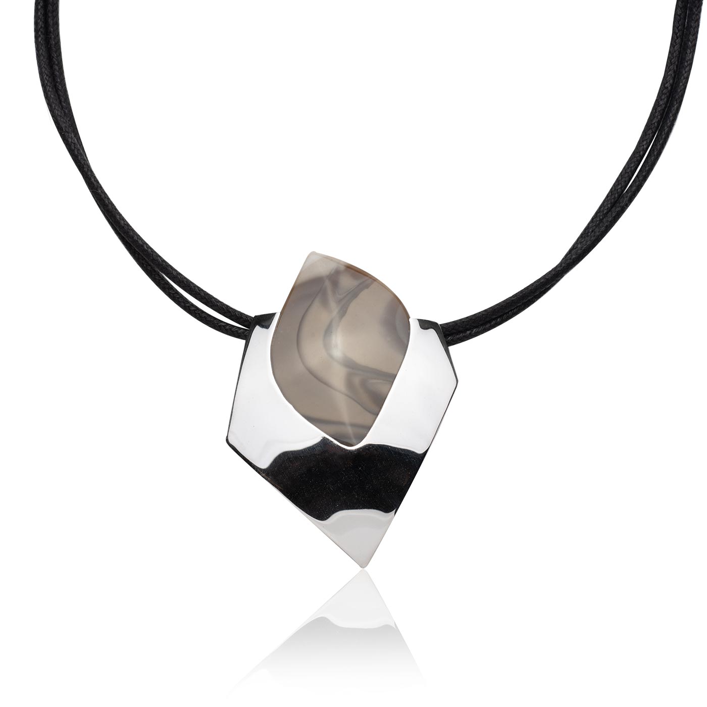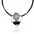 Okazały srebrny naszyjnik z przepięknym krzemieniem pasiastym - Polerowany krzemień oprawiony w czyste srebro, do kompletu podwójny rzemień czarny.