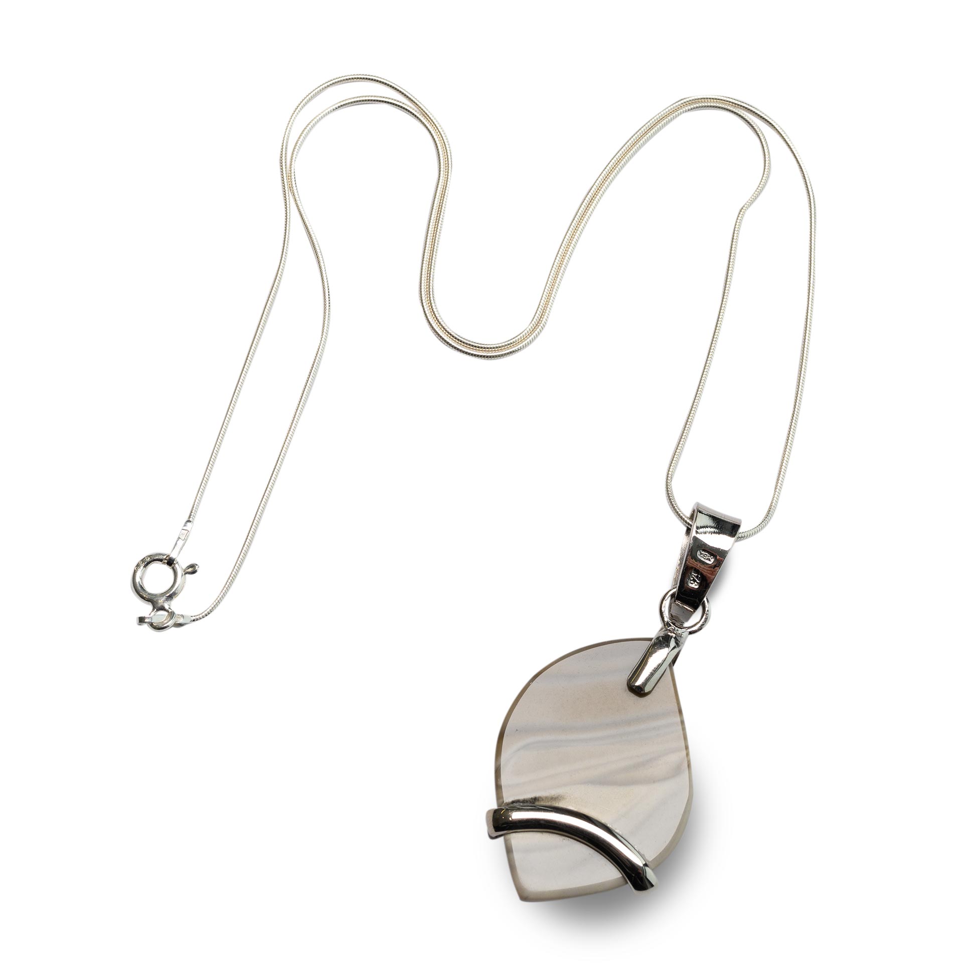 Srebrny naszyjnik z przepięknym krzemieniem pasiastym w formie łezki - kamień zwany Polskim diamentem, będący również kamieniem optymizmu. Polerowany krzemień oprawiony w czyste srebro.