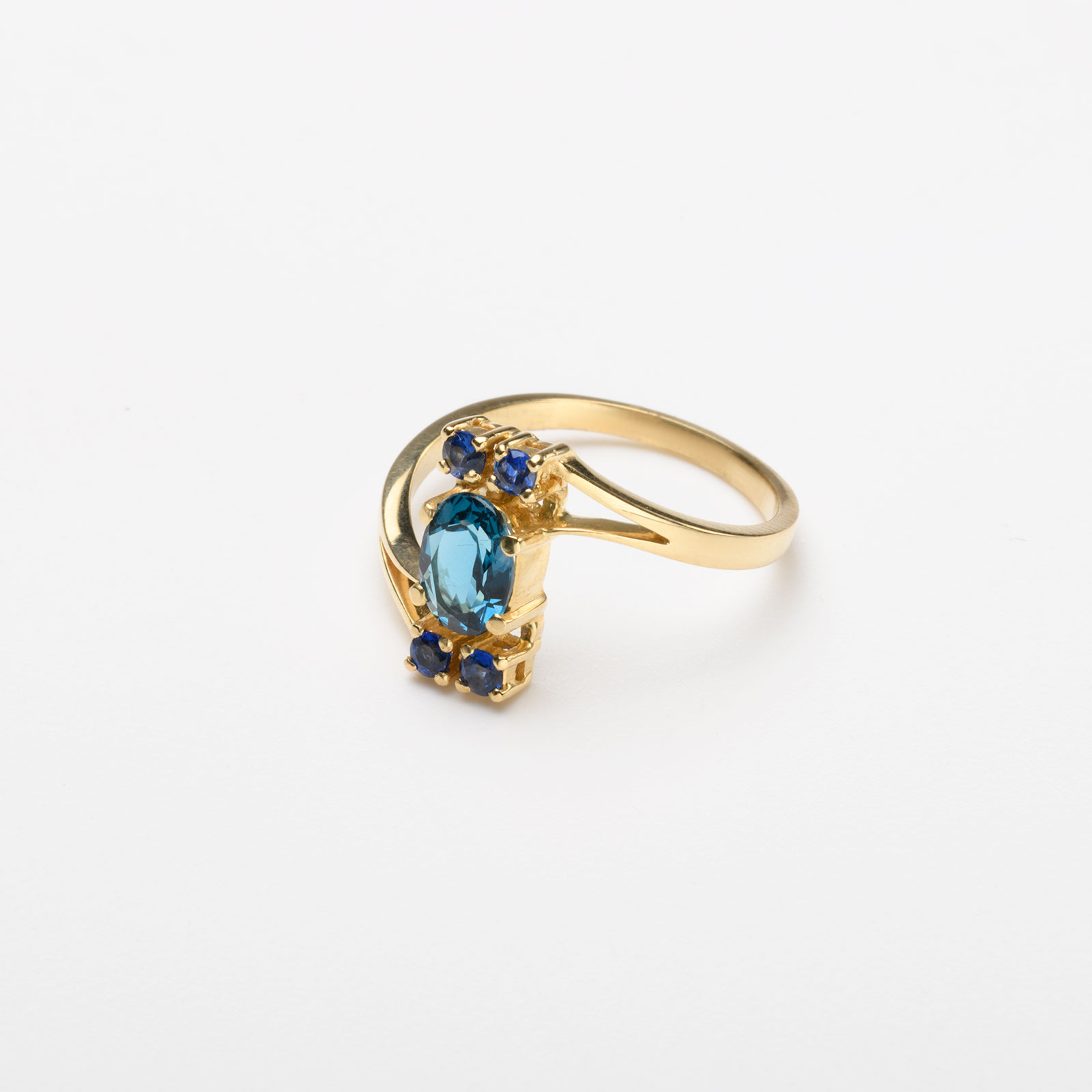 Pierścionek złoty topaz z szafirem