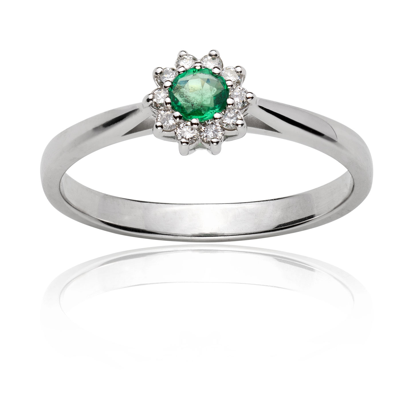 Pierścionek z białego złota ze szmaragdem i brylantami 0,11ct
