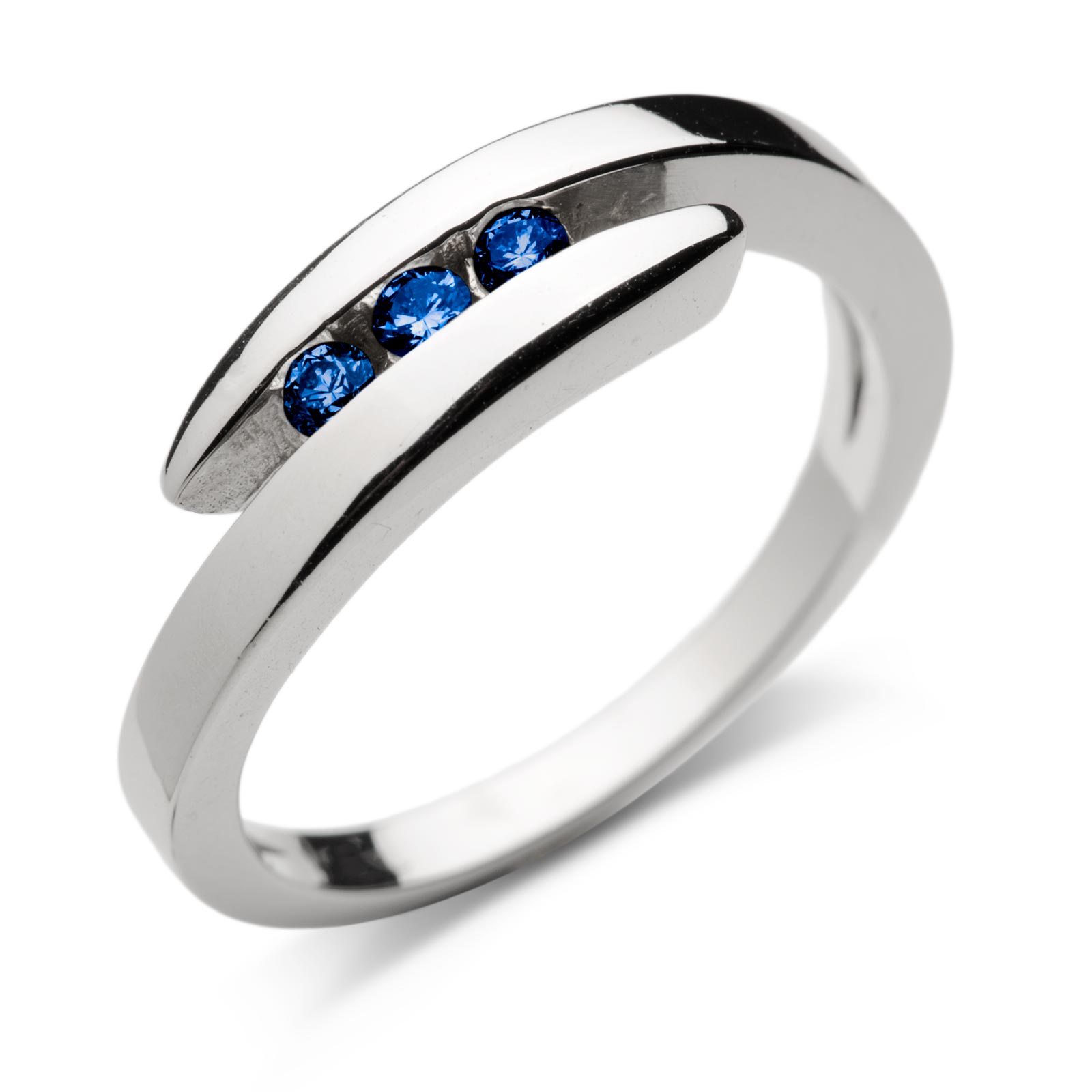 Pierścionek z białego złota z szafirami