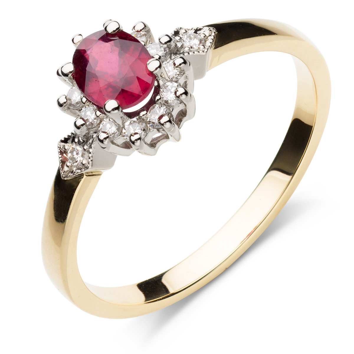 ROSA - ten pierścionek skradnie serce każdej dziewczynie ! Jego śliczności nie da się nie zauważyć - na palcu wygląda wprost olśniewająco ! Jego tajemnica tkwi przepięknym rubinie i znakomitych proporcjach - jest nie za duży, nie za mały i szalenie szykowny. Pierścionek wykonany jest ze złota próby 585 zdobiony owalnym rubinem wysokiej klasy o wspaniałej barwie i dobrej przejrzystości. Rubin otoczony jest brylantami w ilości 14szt. o łącznej masie 0,12ct i parametrach H/VS.
