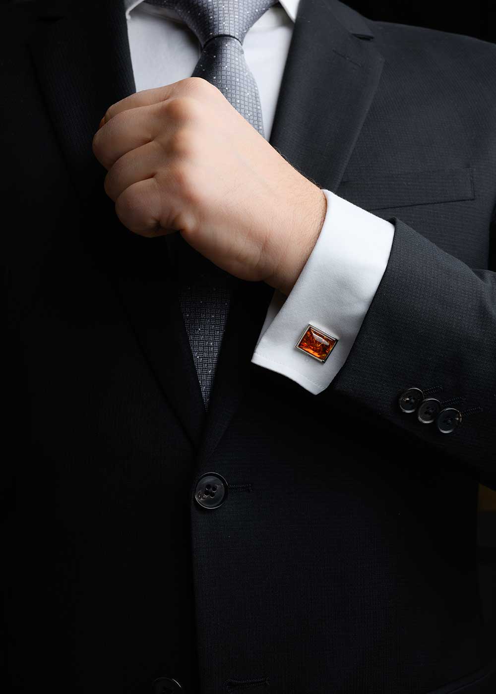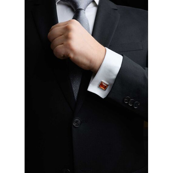 Spinki męskie ze srebra z bursztynem bałtyckim