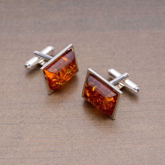 Niewielkie spinki do mankietów wykonane ze srebra próby 925 zdobione bursztynem bałtyckim. Wymiary spinek: 14 x 18mm, waga: ok. 9,5g. Materiał: srebro 925, bursztyn bałtycki. Pudełko przedstawione na zdjęciu do kupienia osobno tutaj.