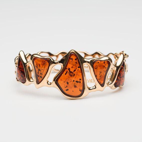 Bransoleta z bursztynem - srebro 925, pozłacana 24k złotem