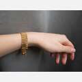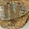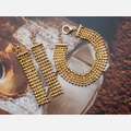 Misternie wykonany komplet ze srebra próby 925 pozłacany 24-kt złotem. Oryginalny i wyjątkowy wzór będzie stanowił idealny dodatek do wszystkiego. Na komplet składa się bransoletka i kolczyki. Bransoletka regulowana o max dł. 21 cm, szer ok. 1,4 cm. Kolczyki zapinane na wkrętki, dł. 1,4 x 6,5 cm