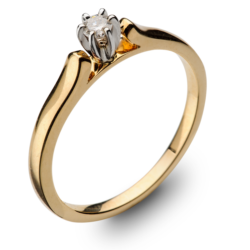 Pierścionek złoty z brylantem 0,07 ct I/SI