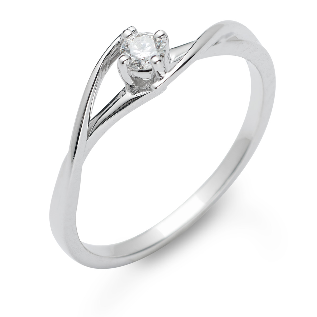 Pierścionek z białego złota 585 ( 14 karat ) z brylantem o masie 0,11ct. H/SI waga ok. 1,5 g. Delikatny, a zarazem bardzo elegancki. Idealny na zaręczyny i nie tylko. Oprawa brylantu w łapki podkreśla piękno kamienia.